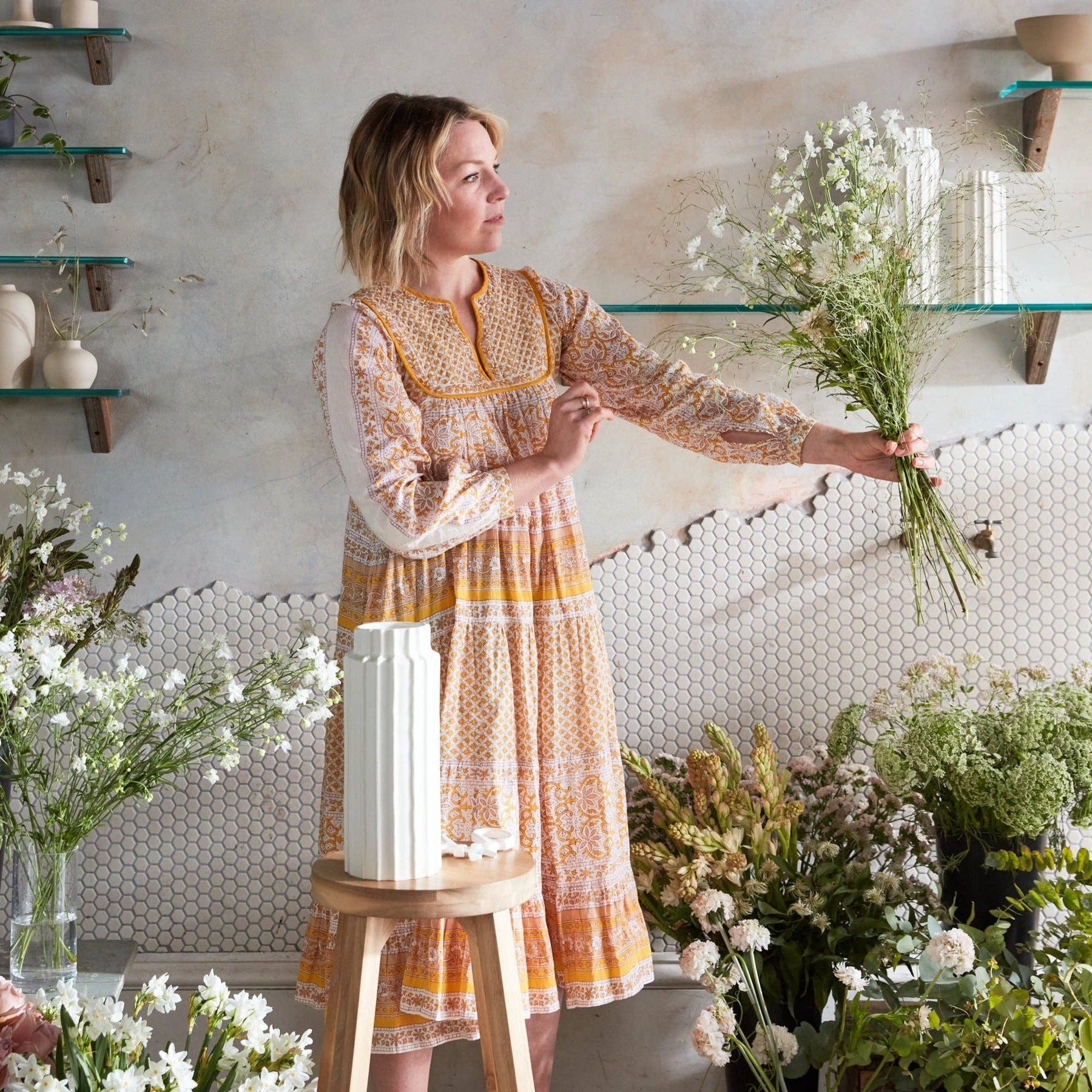 These ceramic cylinder vases invite you to reconnect with the wild bounty of nature, providing the perfect vessels for a foraged handful or a farmer’s market bunch. Inspired by organic linear forms found in nature, use them for impromptu and loose arrangements or for displaying dried botanicals through the colder months.